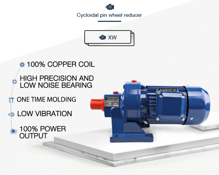 When the input shaft with eccentric sleeve rotation for a week,as a result of the cycloid gear tooth profile curve characteristics and restricted by needle on the gear teeth,the movement of the cycloid gear becoming both revolution and rotation of the plane movement,and input shaft are made for a week,eccentric sleeve also turn the week,cycloid gear in the opposite direction around a big tooth difference reduction is obtained, then with the help pf W output mechanism,the cycloid gear rotates at low speed movement through the pin shaft,passed to the output shaft,low output speed can be achieved.